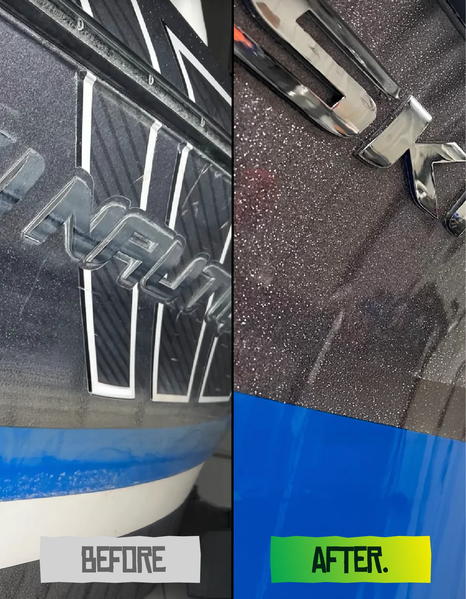 "I’m in love with the exterior cleaner! It took my scum line right off in a couple swipes of the micro fiber towel! It’s a game changer when it comes to cleaning your boat!"