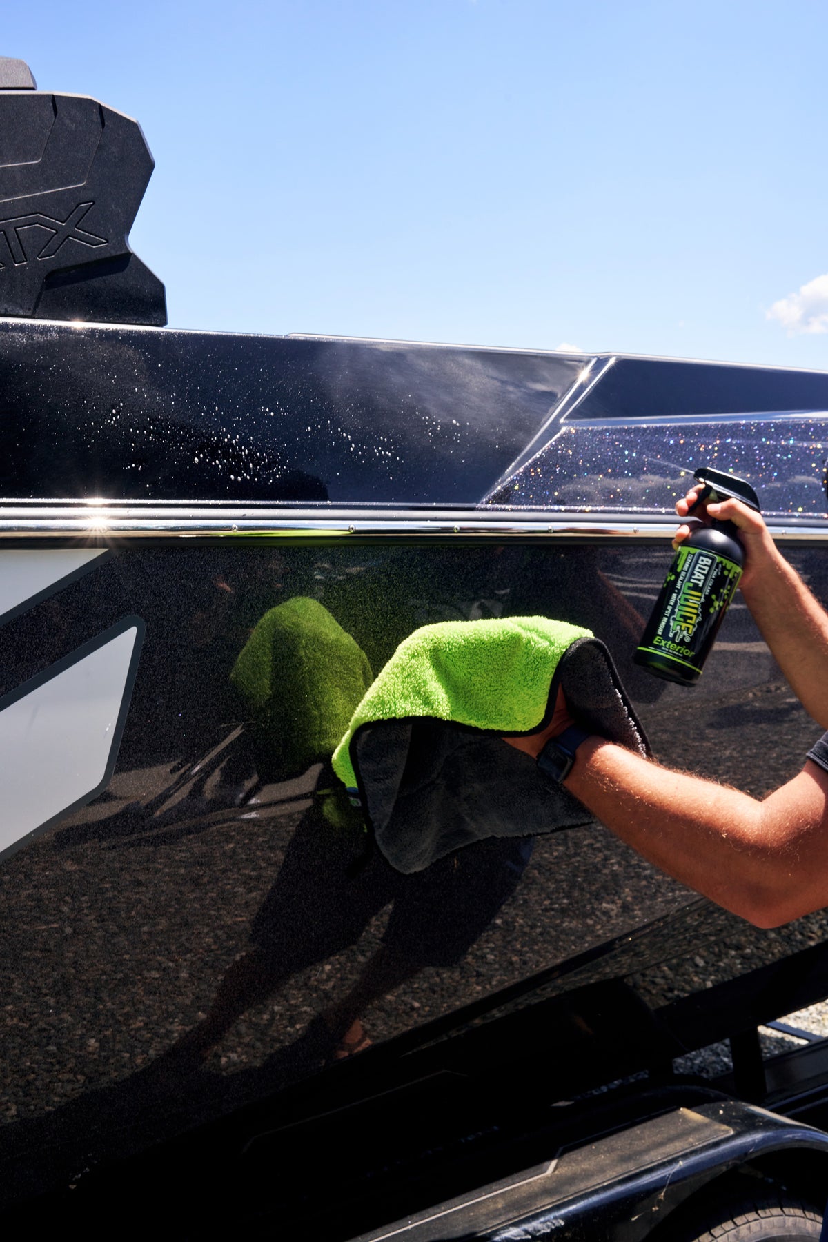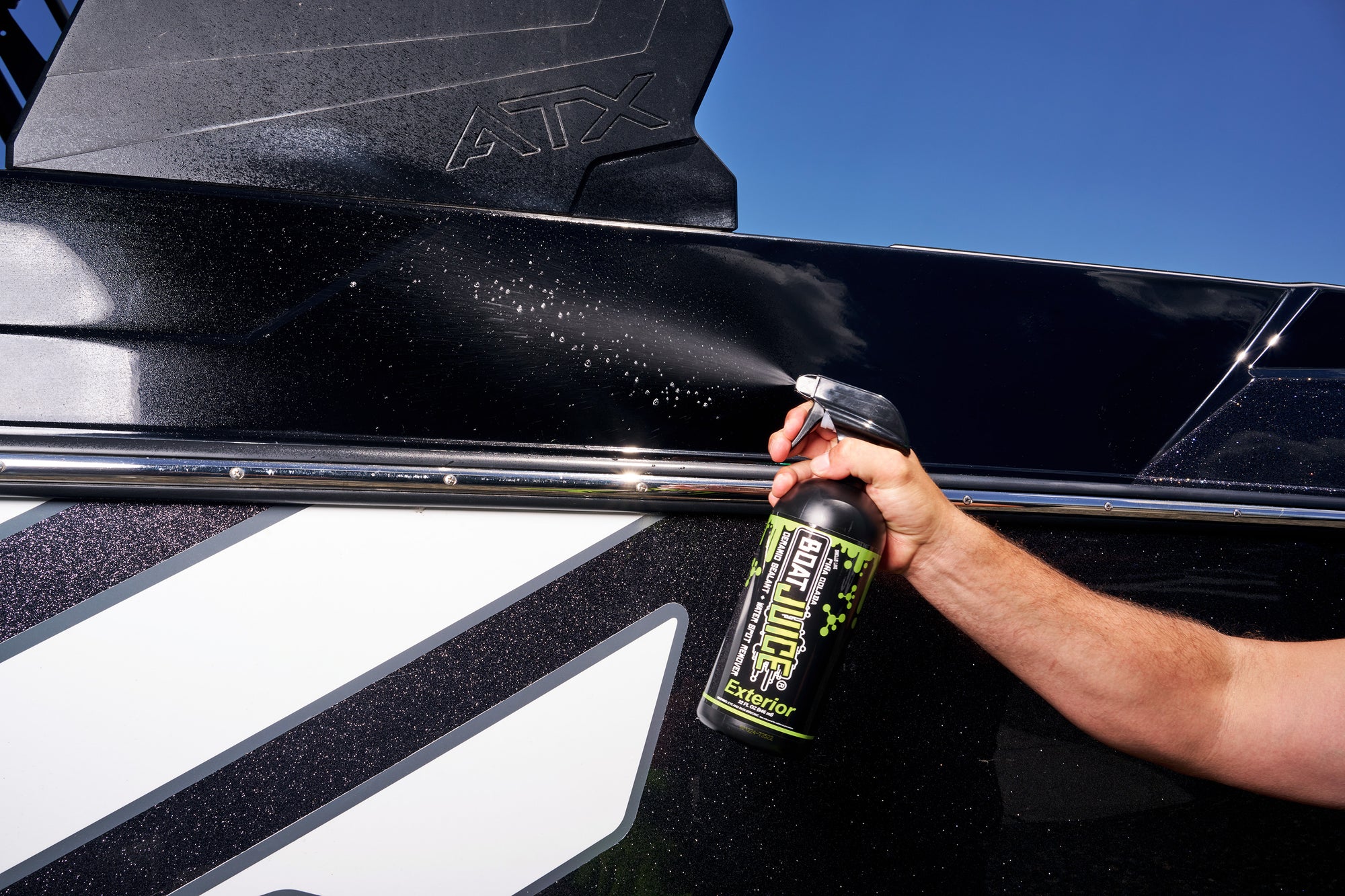 Revitalize your boat’s exterior with the power of Boat Juice Exterior! Our revolutionary 2-in-1 cleaner and protectant takes the hassle out of detailing, combining a premium water spot remover with SiO2 ceramic sealant for unmatched shine and protection. Safe on all exterior surfaces, this formula effortlessly removes stubborn water spots while leaving a durable, glossy coating that shields against the elements. Plus, you’ll love the irresistible Piña Colada scent that makes every wipe-down feel like a tropical escape.